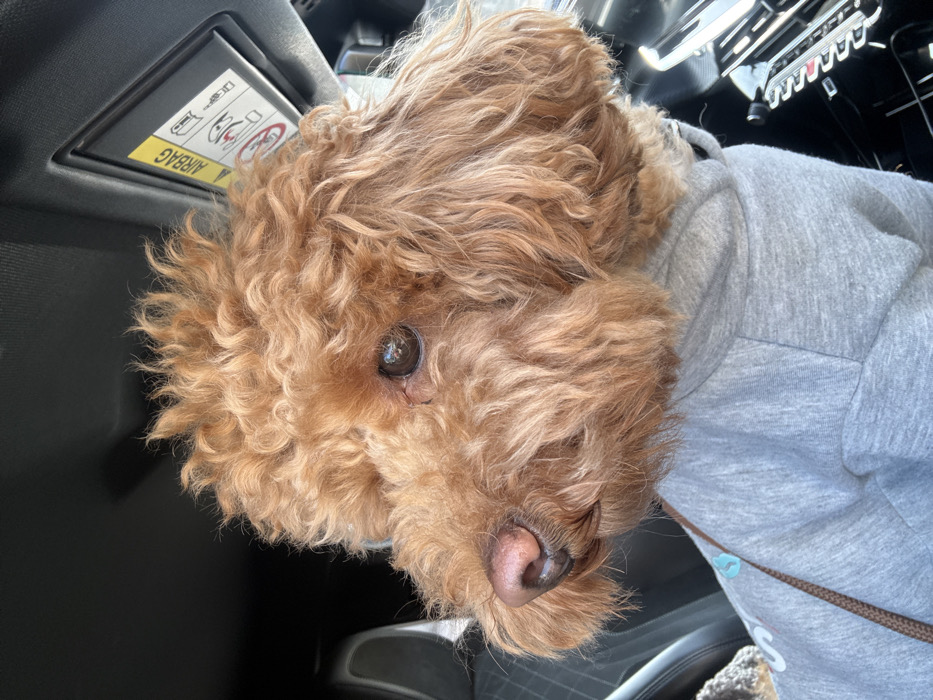 - "The image depicts a reddish-brown, curly-haired dog, consistent with a Poodle type, occupying the interior of a passenger vehicle in the city of Lom, Bulgaria" by FM-y82gr1, licensed under CC BY 4.0