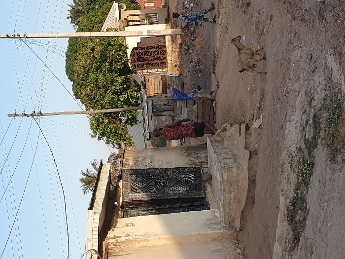 The image displays an outdoor street scene in Lokoja, Nigeria, under clear daylight