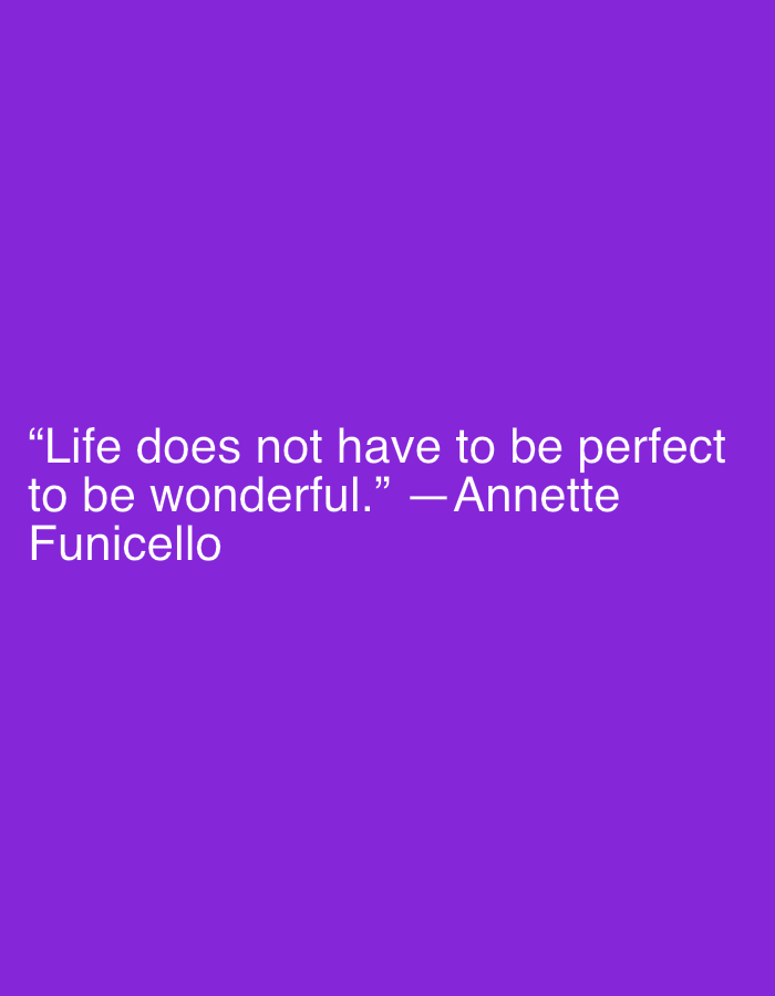 The scene, situated in the city of Narayi, Nigeria, is a digital graphic on a solid purple background. Centered on this background is white text, presenting the quote: "Life does not have to be perfect to be wonderful." attributed to Annette Funicello. No individuals, physical objects, actions, or interactions are depicted within the image. The environment consists solely of the uniformly colored digital canvas and the overlaid white text.