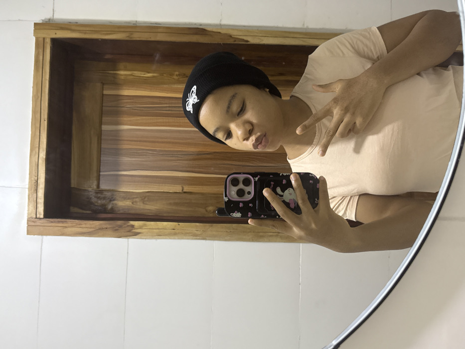 - "A light-skinned female subject is depicted in an indoor setting, specifically a room with white tiled walls and a wooden door, located in Lekki, Nigeria" by FM-kHIBB2, licensed under CC BY 4.0