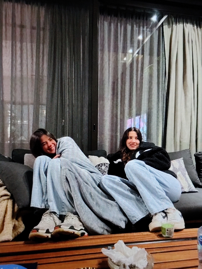 - "This image captures an indoor scene in Otta, Norway, featuring two young adult females seated on a dark grey sofa" by FM-o7Kyx2, licensed under CC BY 4.0