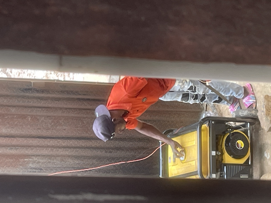 An adult male is observed interacting with a portable generator outdoors in Uturu, Nigeria