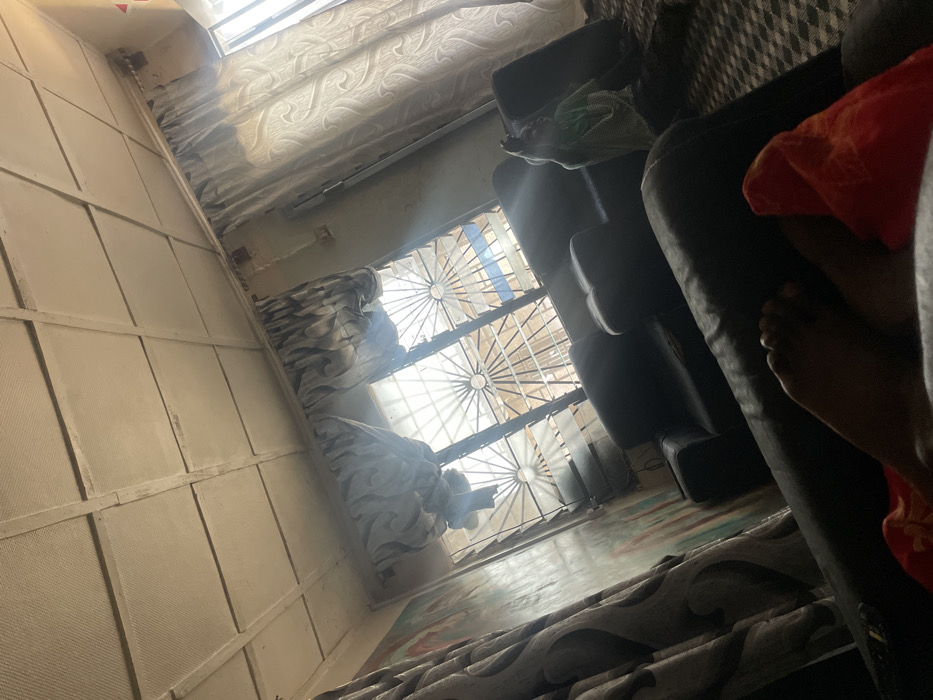 An interior shot captures a living space in Jos, Nigeria, bathed in natural light streaming from a large window