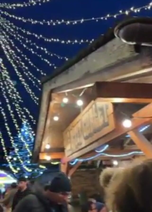 bustling outdoor Christmas market at night