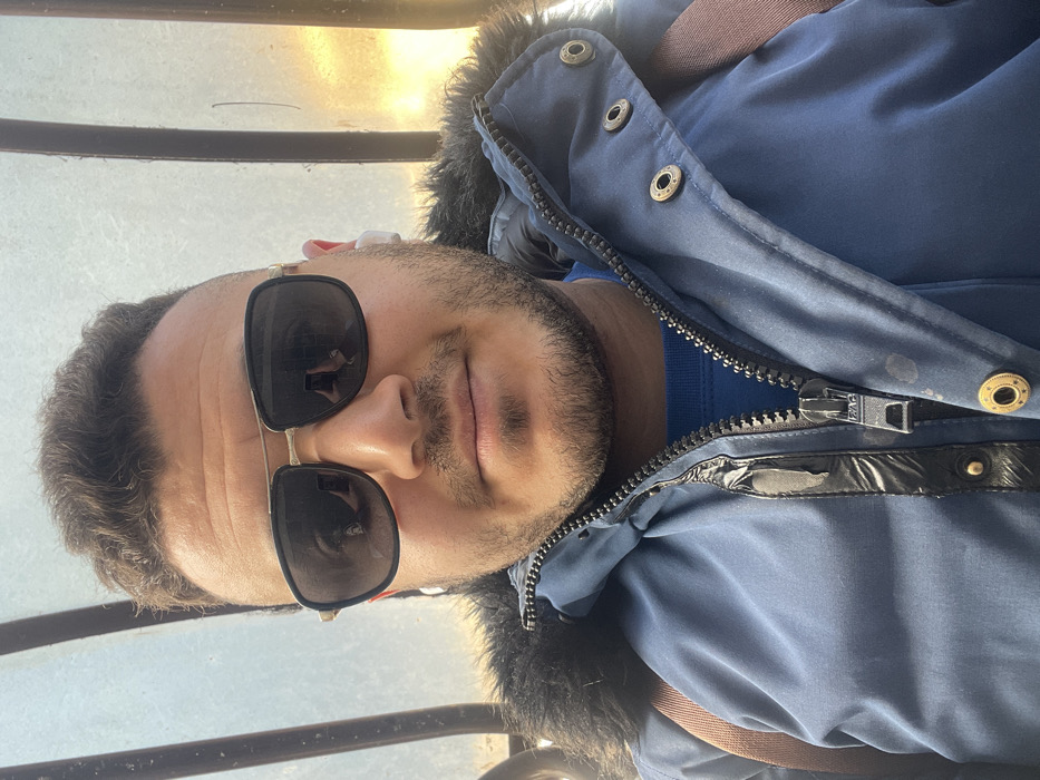 A male individual is depicted in a close-up selfie taken in Zarautz, Spain