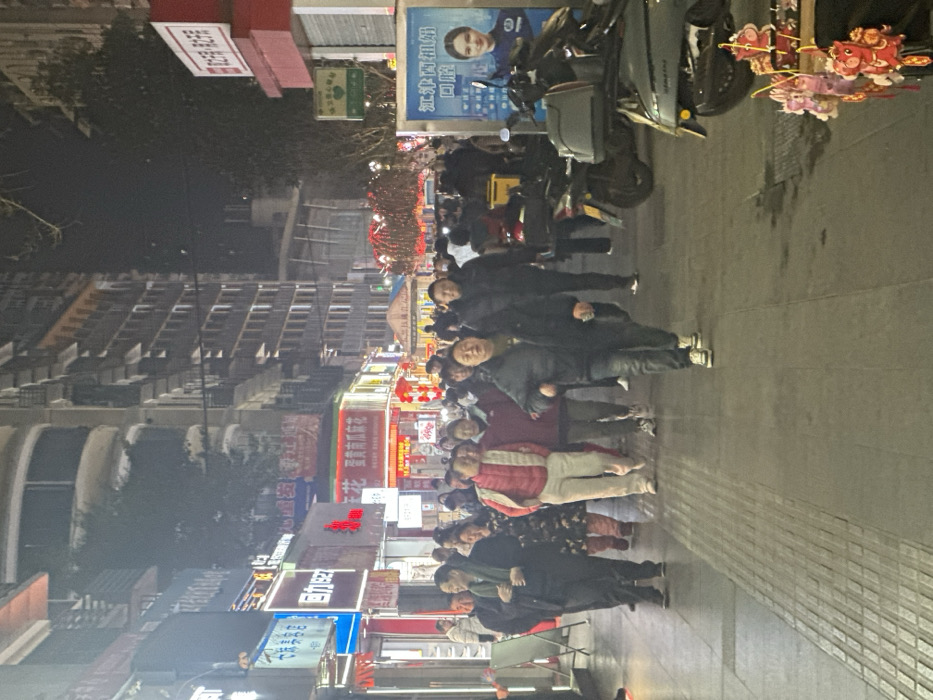 The image depicts a bustling street scene at night in a commercial district of Jiangjin, China