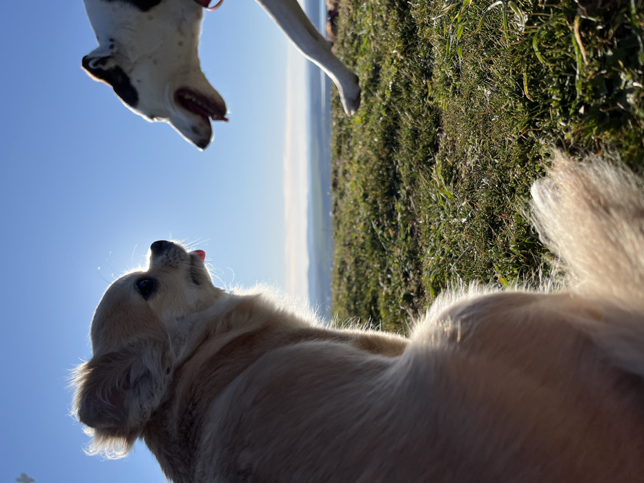 - "The image depicts two dogs on a grassy incline under a clear blue sky, situated on an elevated natural area in Avren, Bulgaria" by FM-m1kZq2, licensed under CC BY 4.0