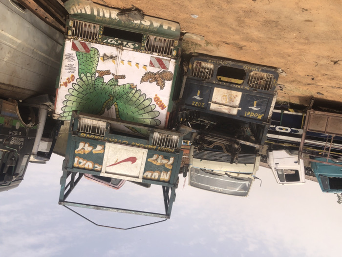 - "The image depicts an outdoor salvage yard in Tukur Tukur, Nigeria, featuring a dense arrangement of disassembled and damaged truck components on reddish-brown earth under a hazy sky" by FM-IhhyI2, licensed under CC BY 4.0