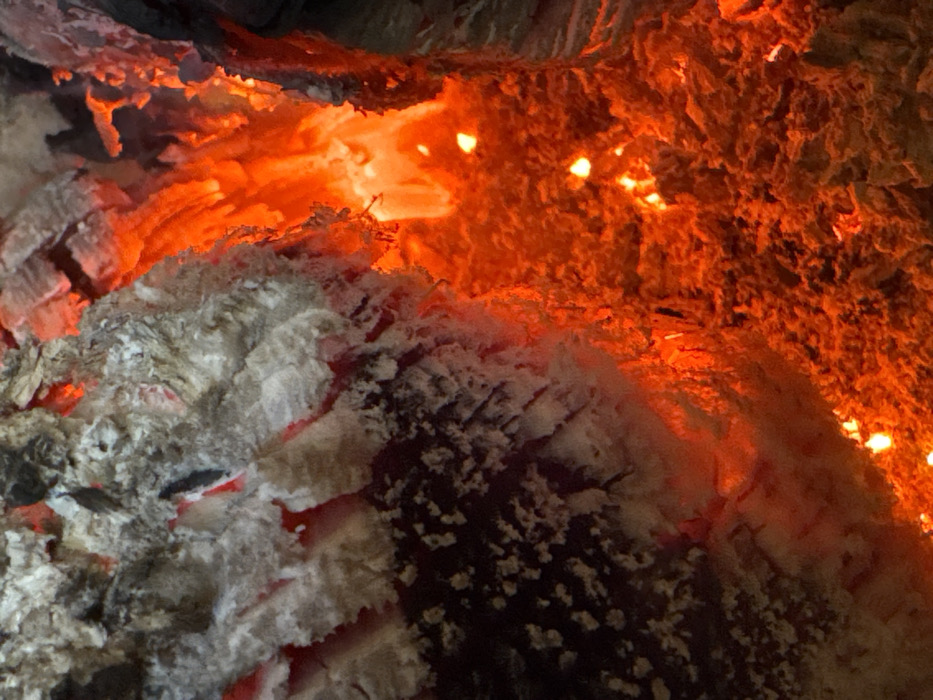 - "A close-up, vertical image displays actively burning wood, characterized by a distinct division between heavily ashed material and glowing embers" by FM-skTYr2, licensed under CC BY 4.0