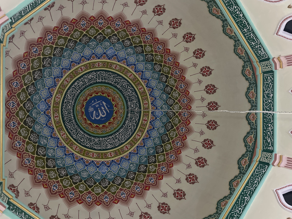 The image depicts the interior dome of a mosque located in Triengmeuduroe, Indonesia