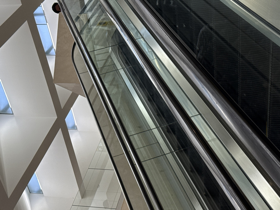 - "An escalator ascends diagonally, featuring metal and glass construction" by FM-AIn2W2, licensed under CC BY 4.0