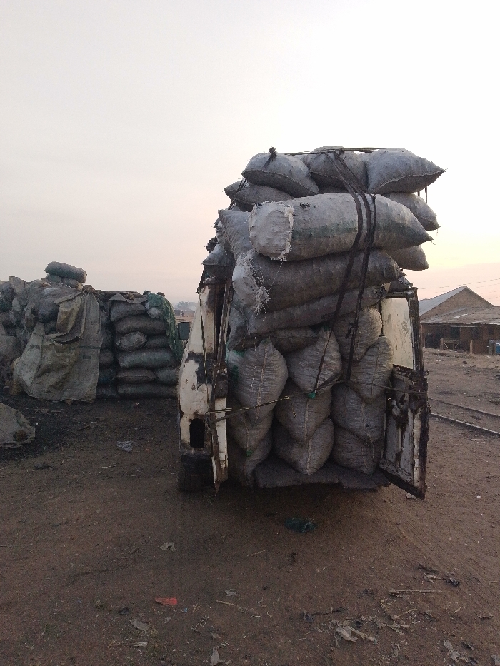 - "A truck is heavily laden with sacks of charcoal, precariously stacked high, with the back doors open" by FM-vJLpO2, licensed under CC BY 4.0