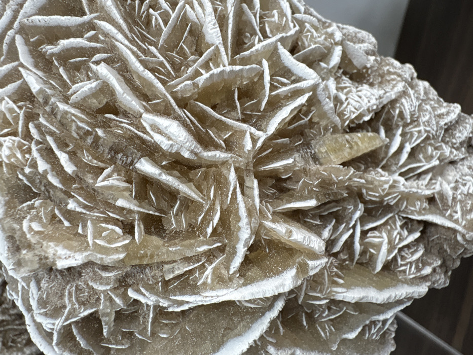 This close-up image showcases a desert rose crystal formation