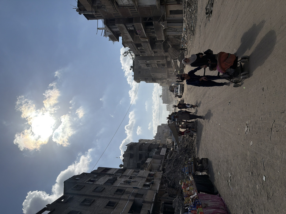 - "This image depicts a wide, unpaved street in Gaza City, Palestinian Territory, under a bright, partly cloudy sky with the sun visible through clouds in the upper left, casting long shadows" by FM-PSI0J3, licensed under CC BY 4.0