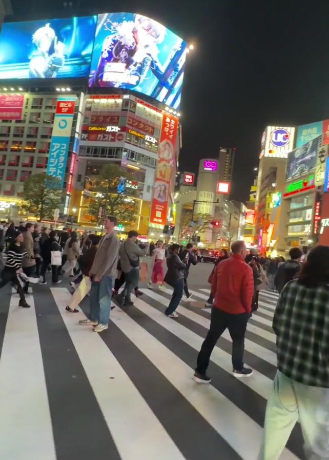- "first-person perspective of walking across a crosswalk in Shibuya, Japan, at night" by FM-J9Tlk2, licensed under CC BY 4.0