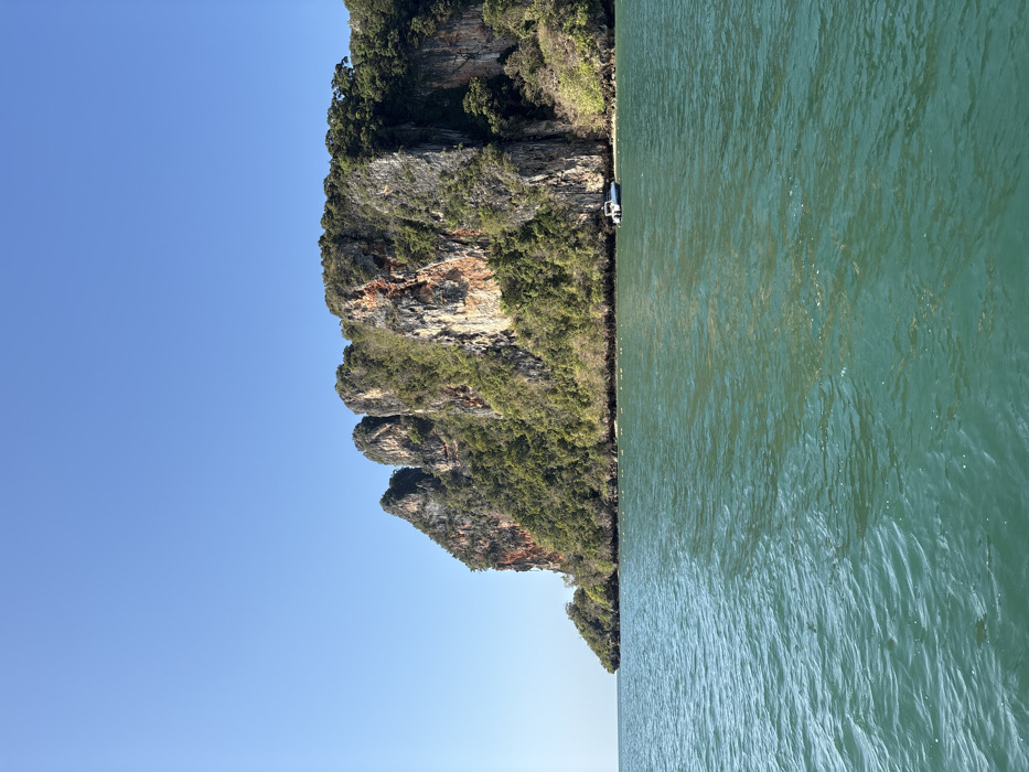 - "The image displays a tropical coastal scene in Ban Ao Nang, Thailand, characterized by a clear, bright blue sky dominating the upper half" by FM-E1hwL2, licensed under CC BY 4.0