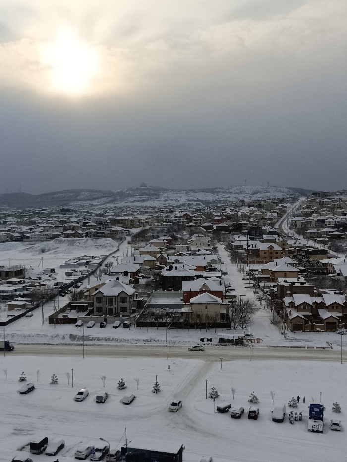 - "A high-angle view depicts a snow-covered cityscape under a cloudy sky with the sun partially obscured" by FM-qrCUd2, licensed under CC BY 4.0