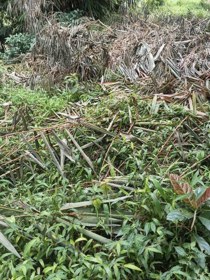 - "A dense landscape features fallen dried palm fronds scattered among vibrant green vegetation" by FM-F8GGF3, licensed under CC BY 4.0