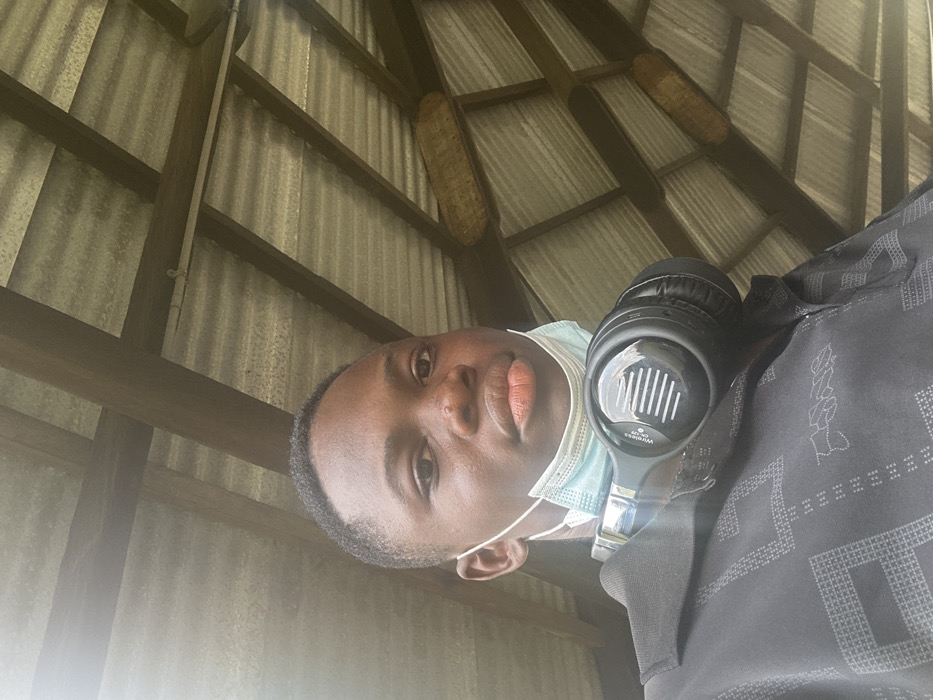 A single individual is photographed from the chest up, positioned indoors or under a shelter in Ozuaha, Nigeria