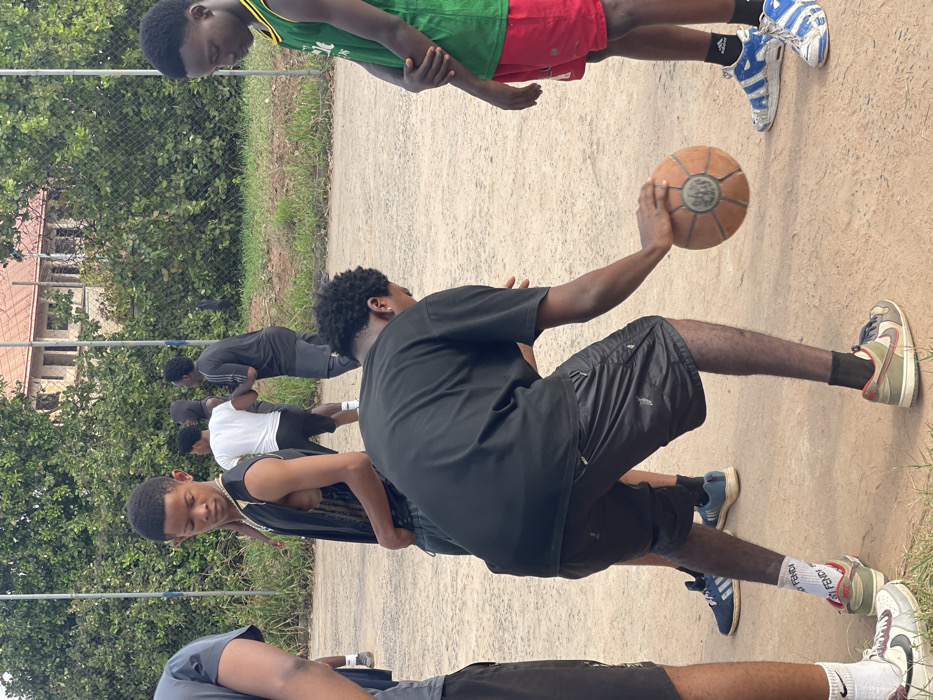 This image depicts an outdoor basketball court in Umunekwu, Nigeria, during daylight hours