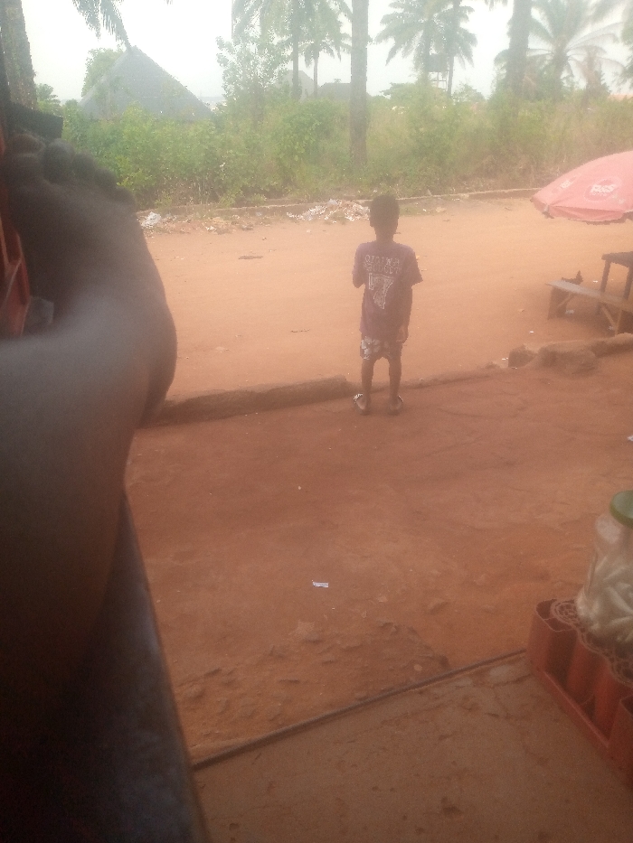 The image depicts an outdoor scene in Nkpor, Nigeria, viewed from a low perspective