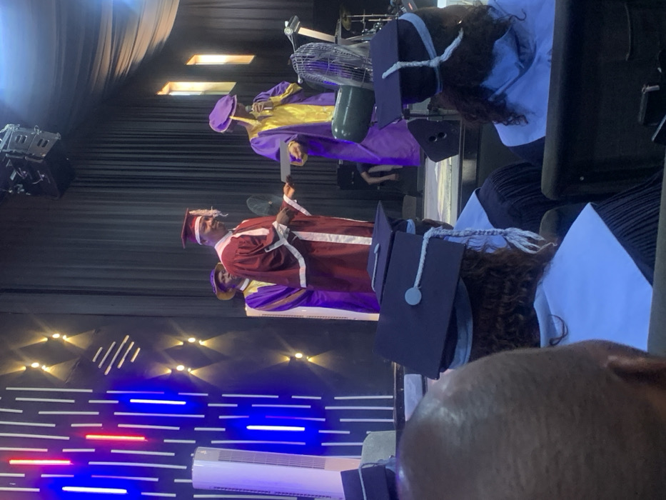 The image depicts an indoor academic ceremony in Tempure, Nigeria