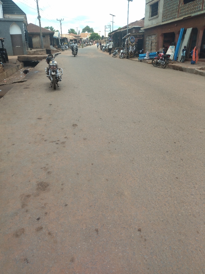 street in Lokoja, Nigeria, taken from a point on the street looking down the length of the road