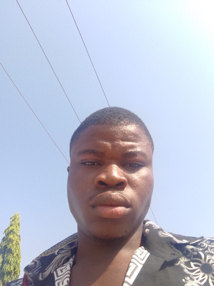 A male individual with a dark complexion and short, dark hair is depicted in a close-up, head-and-shoulders portrait, likely a selfie, in the city of Zango-ndaji, Nigeria