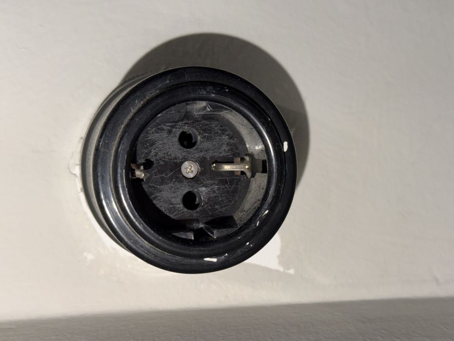- "The image presents a close-up, frontal view of a surface-mounted, circular black electrical outlet, identified as a Schuko (Type F) socket, against a light-colored wall" by FM-YeRL63, licensed under CC BY 4.0