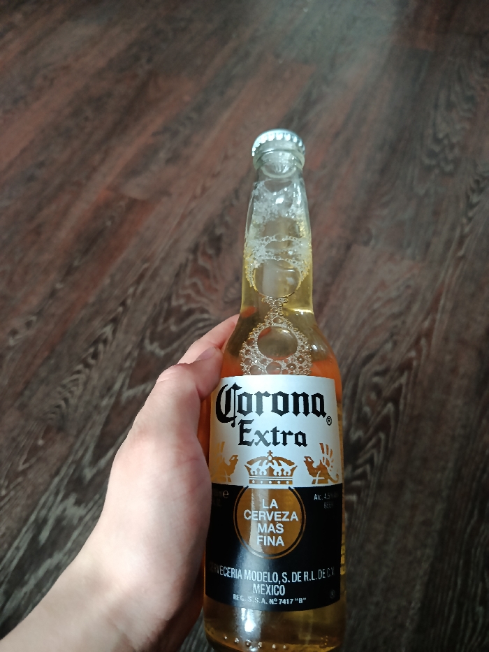 - "A light-skinned human hand is depicted holding a sealed Corona Extra beer bottle in an indoor setting" by FM-qbit22, licensed under CC BY 4.0