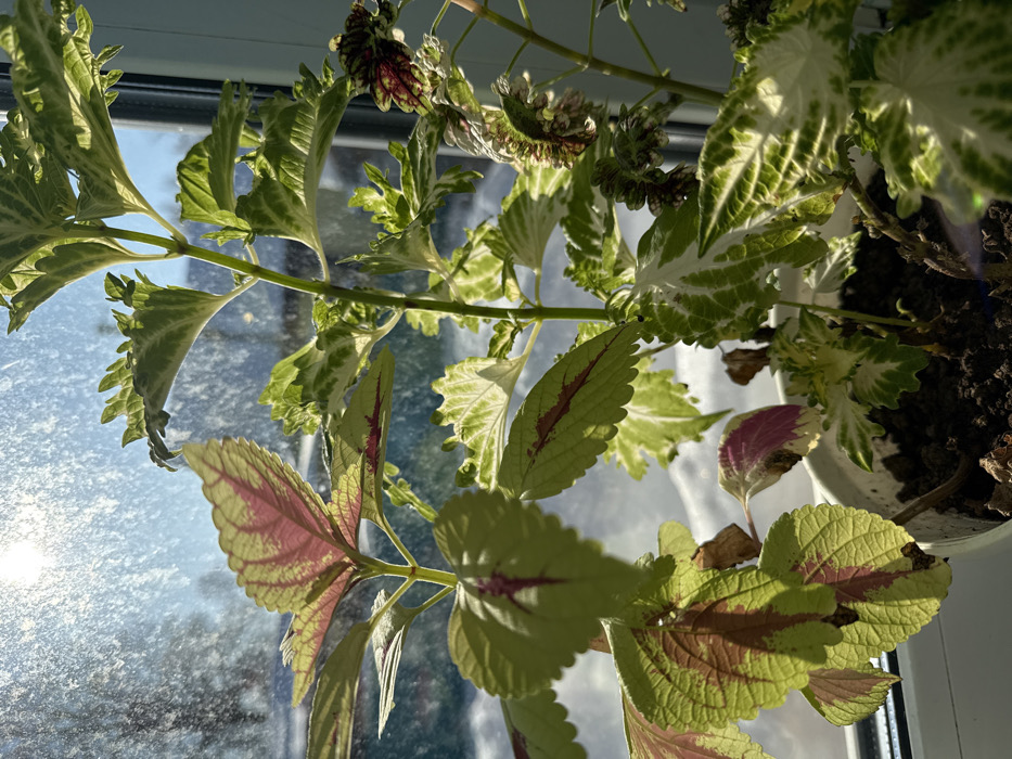 - "An indoor scene in Зура, Russia, depicts a potted variegated plant, likely a Coleus, positioned directly in front of a window" by FM-mxn022, licensed under CC BY 4.0