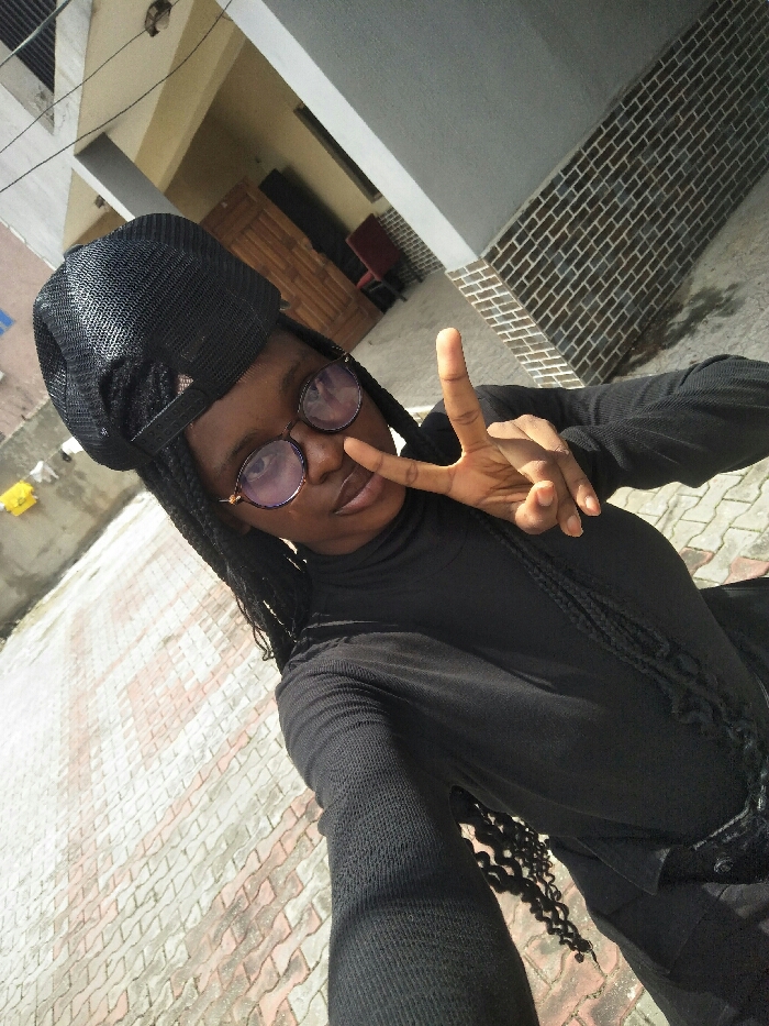 An outdoor scene in Iranla, Nigeria, depicts a single individual, a young Black female, captured in a selfie-style photograph