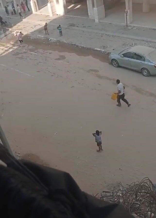 - "The video, taken from an elevated position, shows an outdoor scene with multiple people, mostly children, gathering around a large truck spraying water in a dusty, urban area" by FM-iymI62, licensed under CC BY 4.0