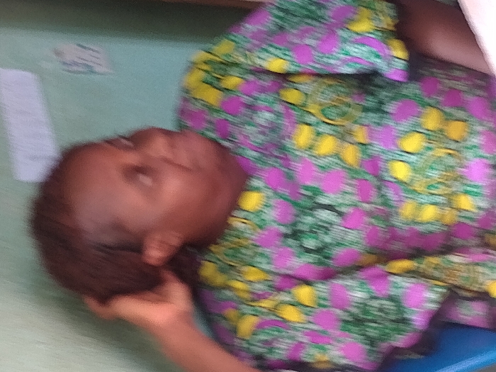 The image depicts a single individual, possibly an adult female, indoors in Owerri, Nigeria