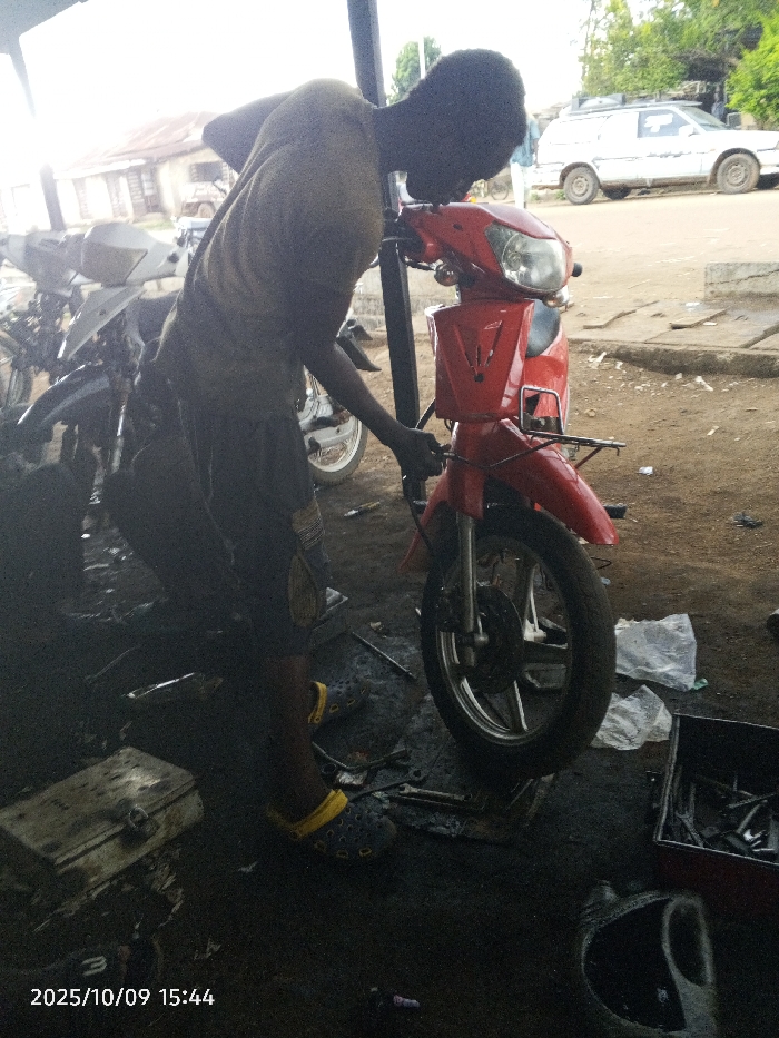 - "The image depicts an outdoor motorcycle repair scene in Kafanchan A, Nigeria, dated 2025/10/09 at 15:44" by FM-dDsul2, licensed under CC BY 4.0