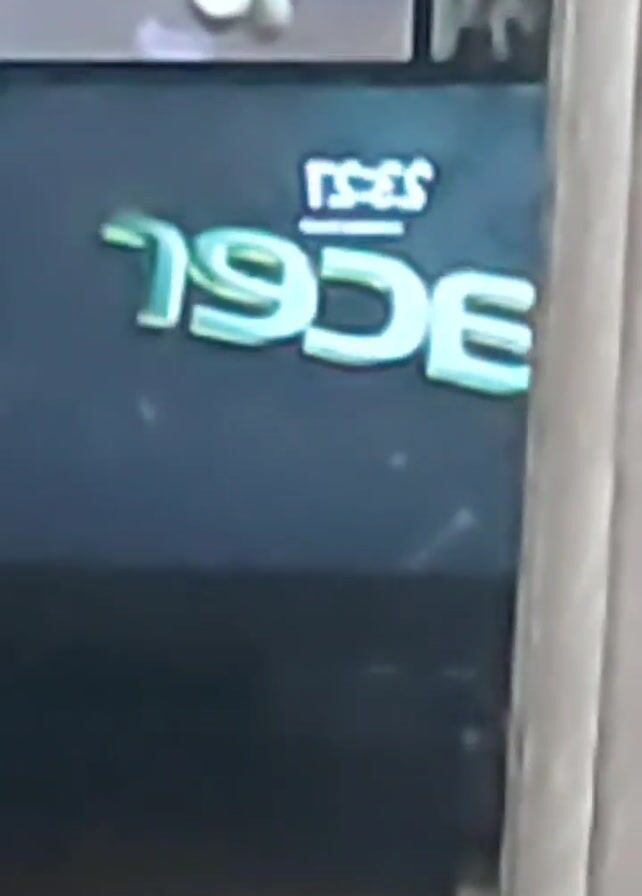 close-up of the back of a black laptop with a turquoise "ACER" logo. The logo is slightly out of focus. A white object is visible in the upper left corner, and a light-colored, possibly wooden, vertical surface is on the right edge of the frame. There is no visible movement.