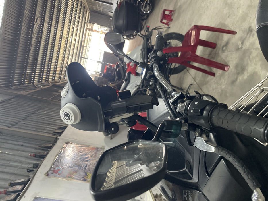 - "Captured from a motorcycle's perspective, a black handlebar with a textured grip is prominent, accompanied by a side mirror" by FM-cs6Ol1, licensed under CC BY 4.0