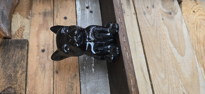- "A glossy black ceramic figurine of a French Bulldog, approximately 15-20 cm in height, is positioned centrally in a sitting posture" by FM-EwSuH2, licensed under CC BY 4.0