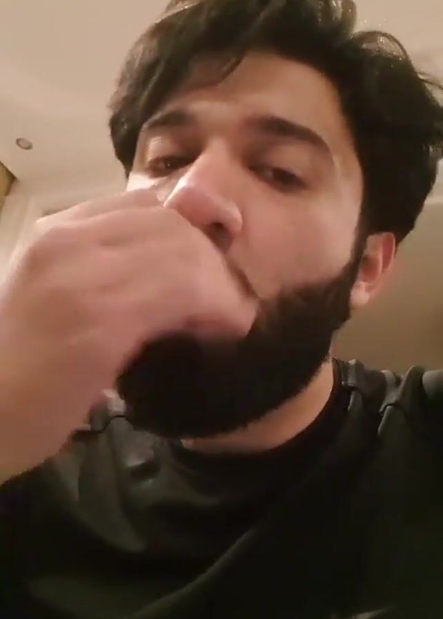 A man with dark, messy hair and a beard looks directly at the camera while speaking and gesturing with his hand