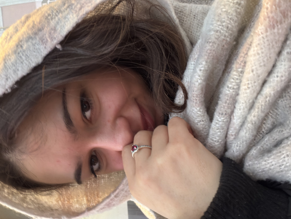 - "A woman is posing closely to the camera, wrapped in a textured, light-colored shawl" by FM-2p7Yo2, licensed under CC BY 4.0