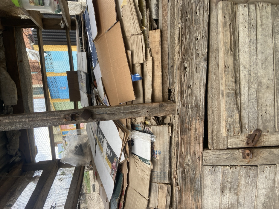 This image depicts a makeshift storage unit or stall located in Ojo, Nigeria