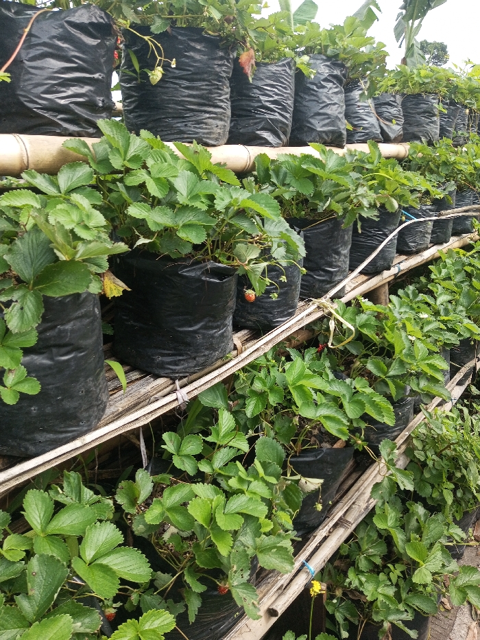 - "Rows of strawberry plants in black plastic bags are supported by a bamboo scaffolding structure" by FM-vTEVn2, licensed under CC BY 4.0