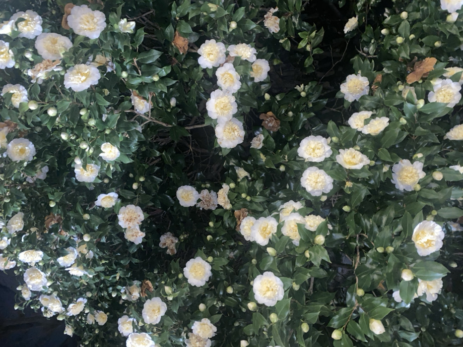 - "The image displays a dense cluster of white and pale yellow flowers, characteristic of a camellia shrub, located in the city of Paris, France" by FM-JcQ6F3, licensed under CC BY 4.0