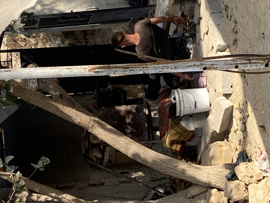 The image depicts an outdoor or semi-outdoor area in Khan Yunis, Palestinian Territory, under bright daylight