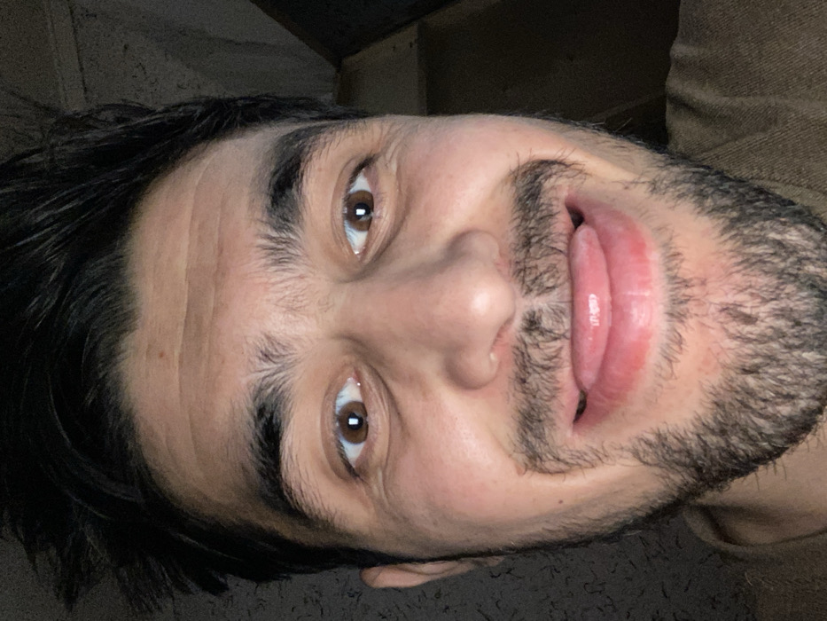 - "A man with dark hair and a stubbly beard looks into the camera, sticking his tongue out slightly" by FM-fKVxi2, licensed under CC BY 4.0