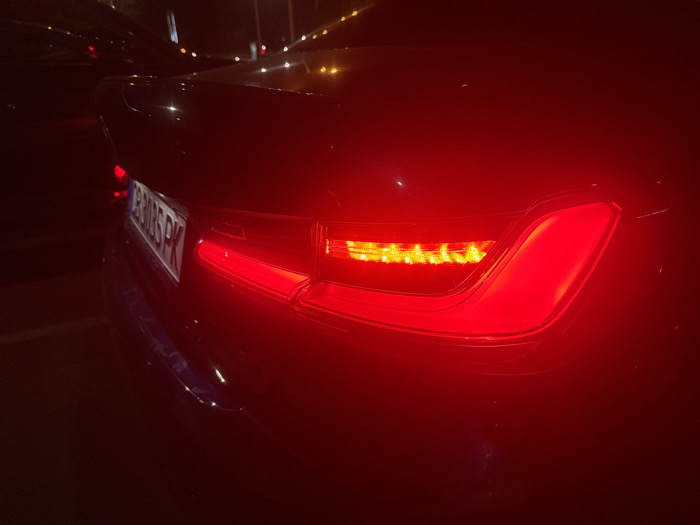 - "The image depicts the rear left quarter of a dark-colored passenger vehicle, likely stationary, at night in an urban environment" by FM-GVhiu1, licensed under CC BY 4.0