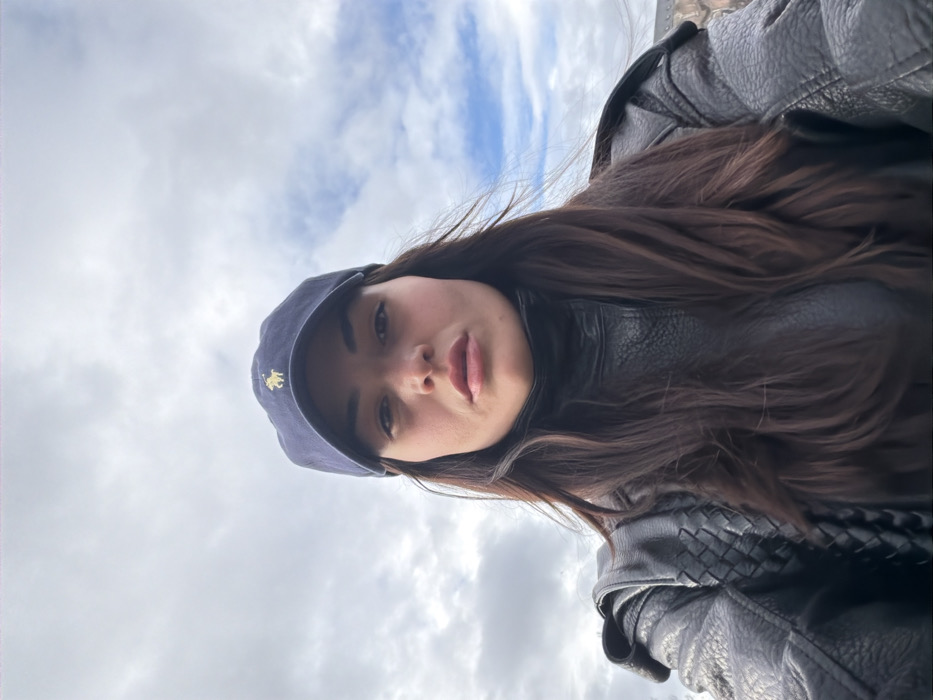 - "A female subject is depicted in a close-up, upward-angled portrait, indicative of a selfie, against an overcast sky with patches of visible blue" by FM-pUbNi2, licensed under CC BY 4.0