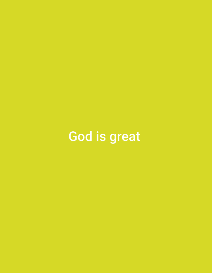 The image displays a solid yellow-green background. Centered on this background, white sans-serif text spells out the phrase "God is great". No individuals, tangible objects apart from the text, or specific environmental elements are visible within the frame. The location is the city of Unknown, Unknown.