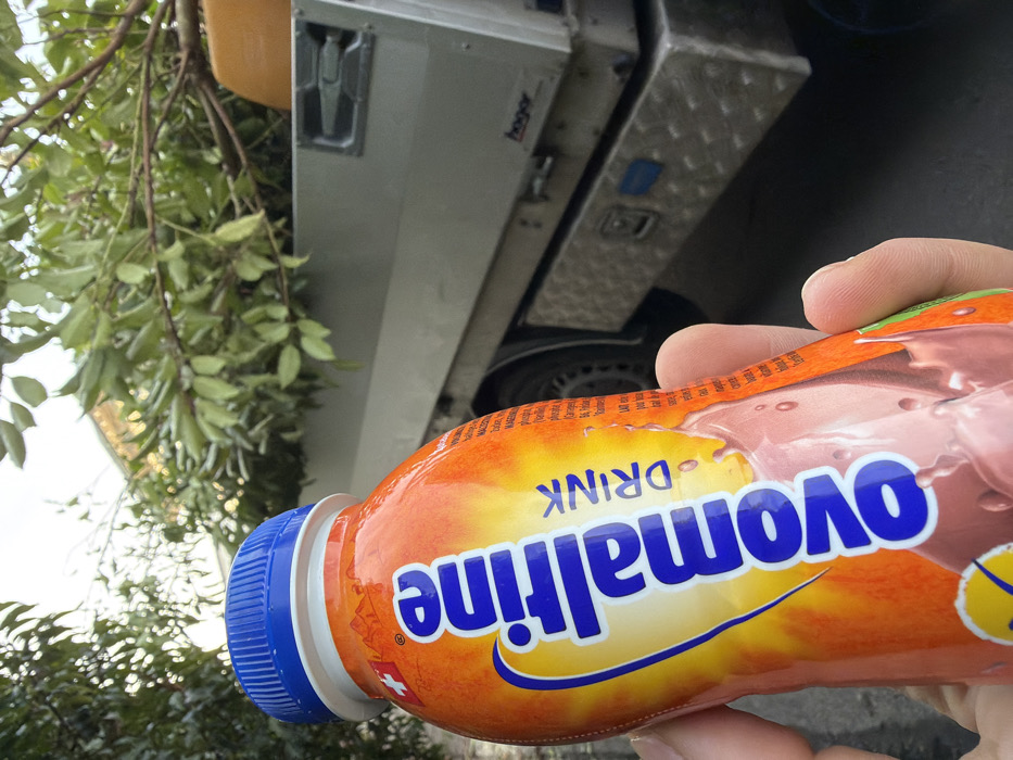 - "A close-up, first-person perspective image depicts a hand holding an Ovomaltine Drink bottle in Kilchberg (ZH), Switzerland" by FM-rg9ds1, licensed under CC BY 4.0