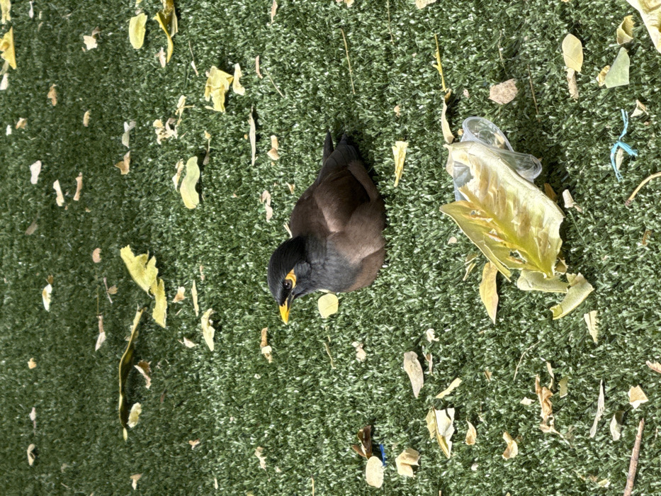 - "An adult Common Myna (Acridotheres tristis) is depicted sitting on artificial green turf under direct sunlight" by FM-XR4443, licensed under CC BY 4.0